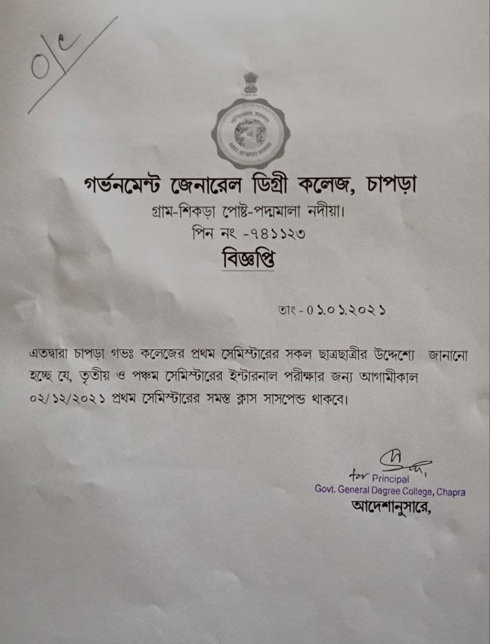 | 108 td > | 02 Oct 2021 | Notice for 1st Semester Class initiation | Download | tr >