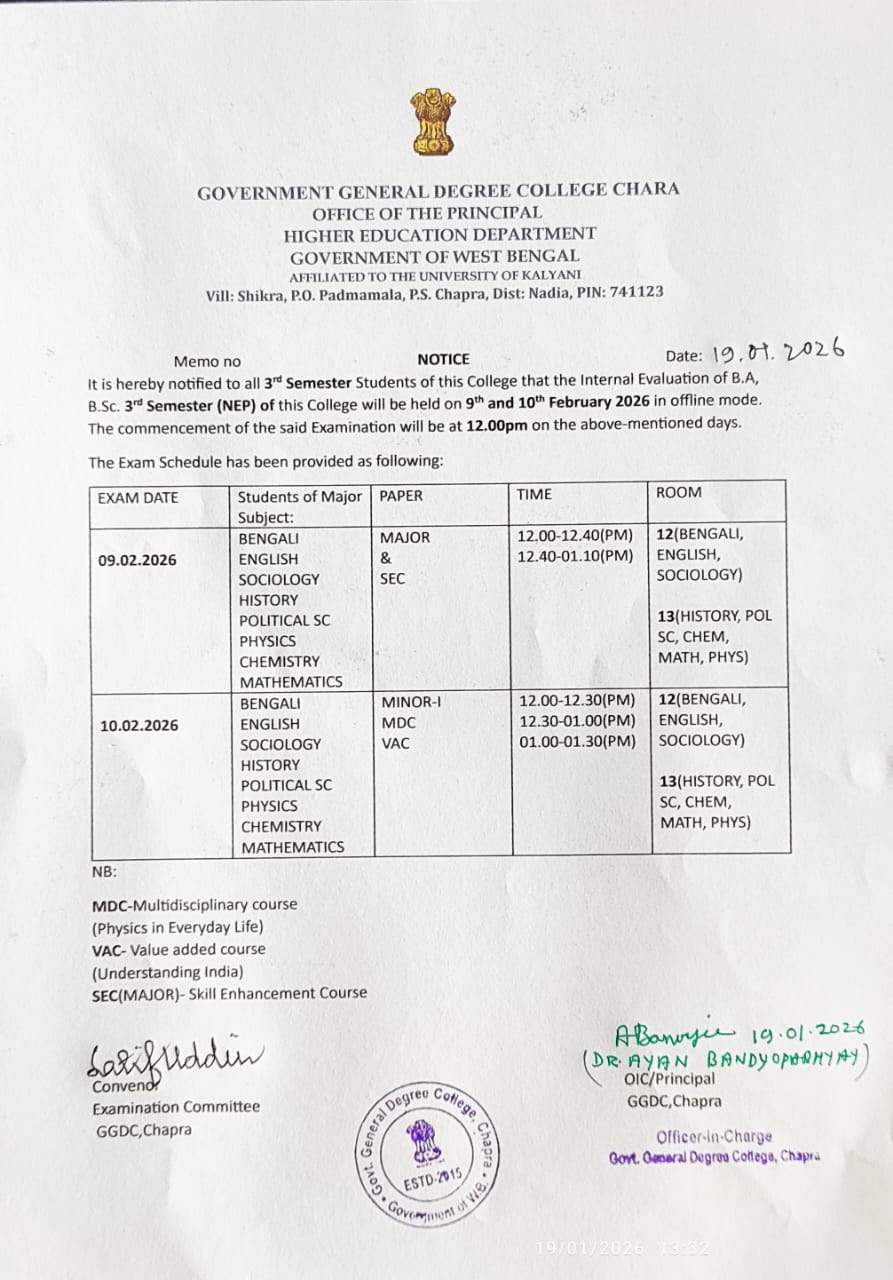 Swami Vivekananda’s clarion call to the nation to educate the masses and uplift the poor is the motto of the institution, Government General Degree College, Chapra. The college was established on 30-10-2013, to promote education and impart knowledge to the socially backward areas surrounding the village of Shikra. Since its inception, the college has seen an increased enthusiasm among the local population towards pursuing higher education. They are now motivated to fulfill their dreams and their ambitions of entering the realms of higher education and knowledge. Read More..